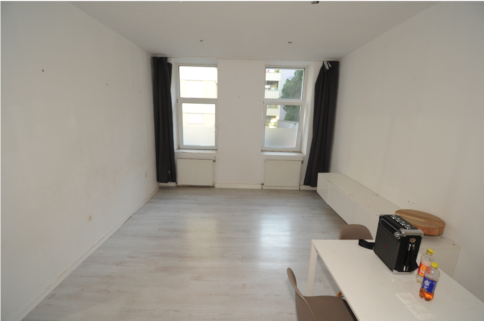 Die bewertungsgegenständliche Wohnung Top 3 ist im Hochparterre der Liegenschaft situiert und wird vom allgemeinen Gang über eine einflügelige Holztür mit Sicherheitsschloss betreten. Die Wohnung gliedert sich in eine Küche, ein Bad mit WC, zwei Kabinette, einen Gang und zwei Zimmer. Sie ist sowohl straßen- als auch hofseitig ausgerichtet und verfügt über in diese Richtung orientierte Fenster, die als Kunststofffenster ausgerichtet sind. Ein Querlüften ist aufgrund der Konfiguration der Wohnung möglich.