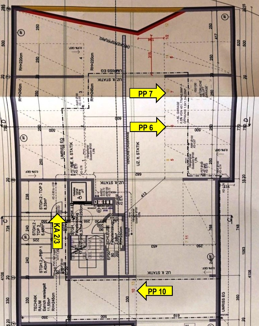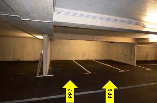 Tiefgarage. Die Stellplätze Nr. 6 und 7 befinden sich (gemeinsam mit einem weiteren