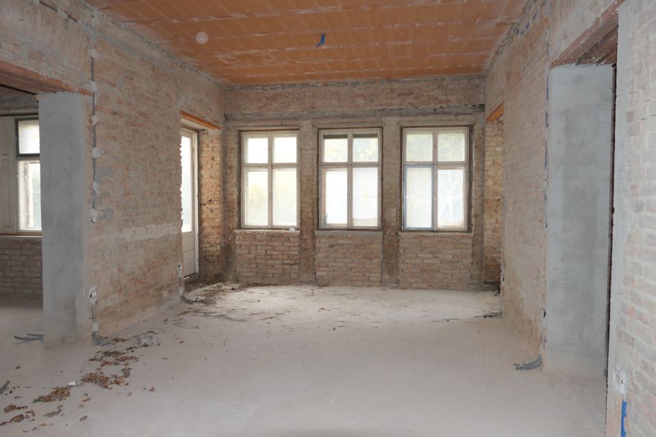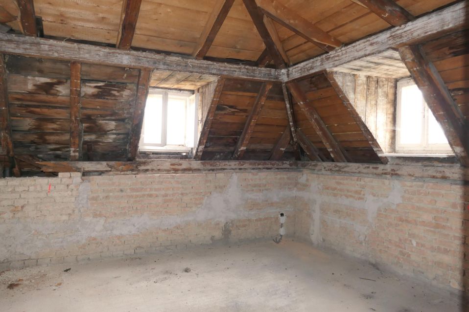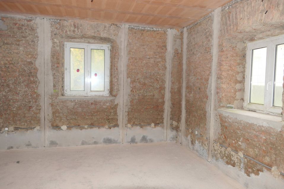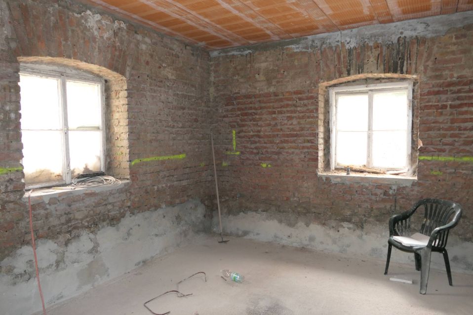 Das Gebäude befindet sich im Rohbauzustand (der gesamte Innenausbau fehlt) mit Betonböden (Rohdecke), Ziegelwänden und Ziegeldecken. Die Elektroleitungen sind teilweise als Rohinstallation vorhanden. Im Dachgeschoss ist die Dachuntersicht offen. Die Dach- und Fassadensanierung und die Erneuerung der Fenster sind ebenfalls noch ausständig. Eine Heizungsanlage ist keine vorhanden.
